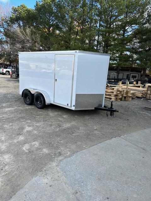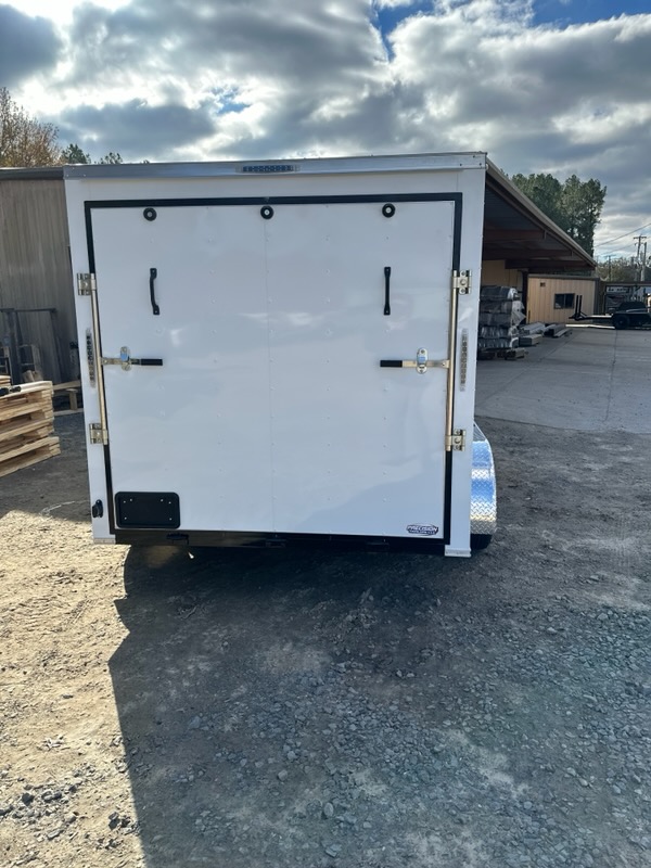 | Enclosed Utility Trailers come standard with: 16″ on center cross members and sidewalls, 24″ on center roof tubing, 36″ side door, 78″ interior height, 34″ plywood floors, 5/8 plywood walls, 12V Dome light, Aluminum ceiling, 24″ stone guard, LED lights, V-Nose front, E-Z lube hubs, and a door hold-back. | ||||||||